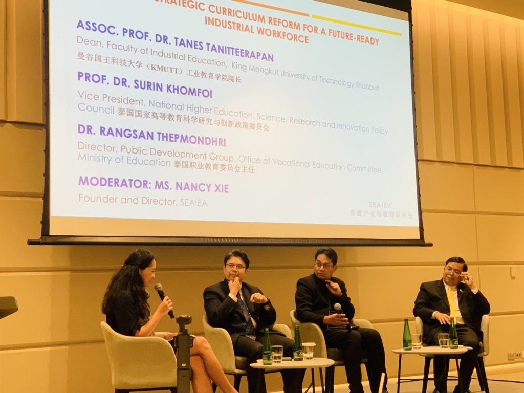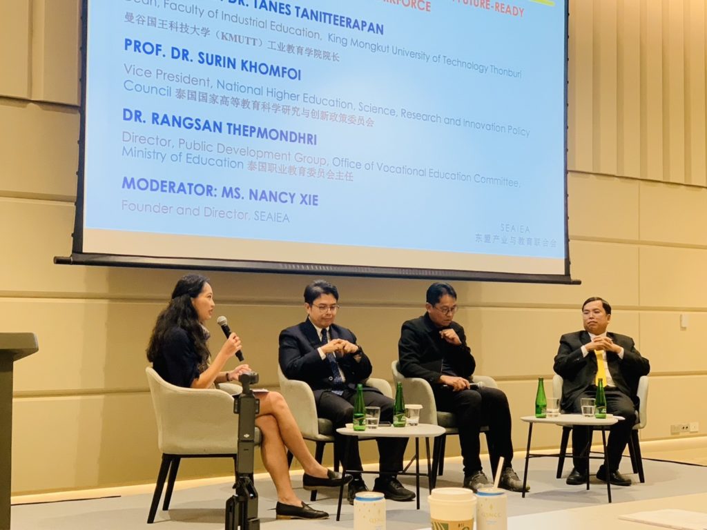 อีกทั้งยังได้เสนอแนวทางการปฏิรูปหลักสูตรและการพัฒนาทักษะที่ตอบโจทย์ตลาดแรงงานในอนาคต ได้แก่ 1. การพัฒนาหลักสูตรร่วมกับภาคอุตสาหกรรม (Curriculum Co-Design) 2. การจัดอบรมระยะสั้นและระบบรับรองสมรรถนะ (Short-Course Certification) และ 3. การสร้างเครือข่ายความร่วมมือระดับภูมิภาค โดยเฉพาะอาเซียน–จีน ในการพัฒนาหลักสูตรและระบบฝึกอบรมทักษะขั้นสูง