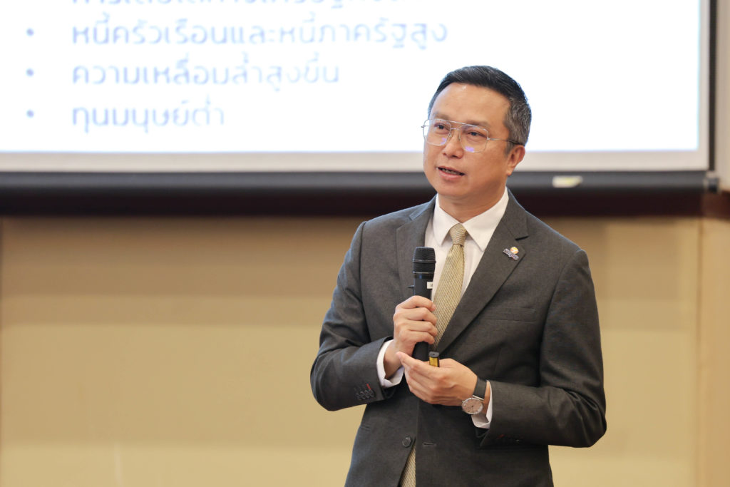 ดร.สุรชัย ได้สะท้อนให้เห็นความท้าทายในการพัฒนาเศรษฐกิจไทย โดยแบ่งออกเป็น 4 ประเด็น ได้แก่ 1. การค้าระหว่างประเทศ จากการเปลี่ยนแปลงทางด้านภูมิรัฐศาสตร์ (Geopolitics) จึงต้องให้ความสำคัญกับการเคลื่อนไหวของแต่ละประเทศ ทั้งกลุ่มประเทศมหาอำนาจ และประเทศในกลุ่มอาเซียนด้วย ประเด็นต่อมาคือเรื่องห่วงโซ่มูลค่าโลก (Global Value Chain) ที่หลังจากเกิดสถานการณ์โควิดส่งผลให้ห่วงโซ่อุปทานเปลี่ยนไป และอีกประเด็นที่สำคัญคือ กฎระเบียบทางการค้า อาทิ EU Green Deal ซึ่งเป็นนโยบายของสหภาพยุโรปในการมุ่งสู่เป้าหมายความเป็นกลางทางคาร์บอน กลไกการปรับคาร์บอนก่อนข้ามพรมแดน หรือ CBAM (Carbon Border Adjustment Mechanism) มาตรการกำหนดราคาสินค้านำเข้าของสหภาพยุโรป หรือการประกาศใช้กฎหมายว่าด้วยสินค้าที่ปลอดจากการตัดไม้ทำลายป่า (EU Regulation on Deforestation-free products: EUDR) ของสหภาพยุโรป ฯลฯ จากประเด็นเหล่านี้ หากไทยไม่ปรับตัวก็จะขายสินค้าไม่ได้และส่งผลกระทบต่อเศรษฐกิจตามมา 2. เทคโนโลยีที่เปลี่ยนแปลงไป ผลิตภาพปัจจัยการผลิตรวม (Total Factor Productivity) ต่ำ เนื่องจากเทคโนโลยีล้าหลัง ต้องมีการพัฒนาเทคโนโลยีใหม่ เช่น Smart Manufacturing, AI และ Synthetic Biology 3. เสถียรภาพทางการเมืองที่มีการเปลี่ยนแปลงและมีความไม่แน่นอน และ 4. เศรษฐกิจในประเทศ ที่มีอัตราการเติบโตต่ำ หนี้ครัวเรือนสูง มีปัญหาความเหลื่อมล้ำ การเข้าสู่สังคมผู้สูงอายุ ทุนมนุษย์