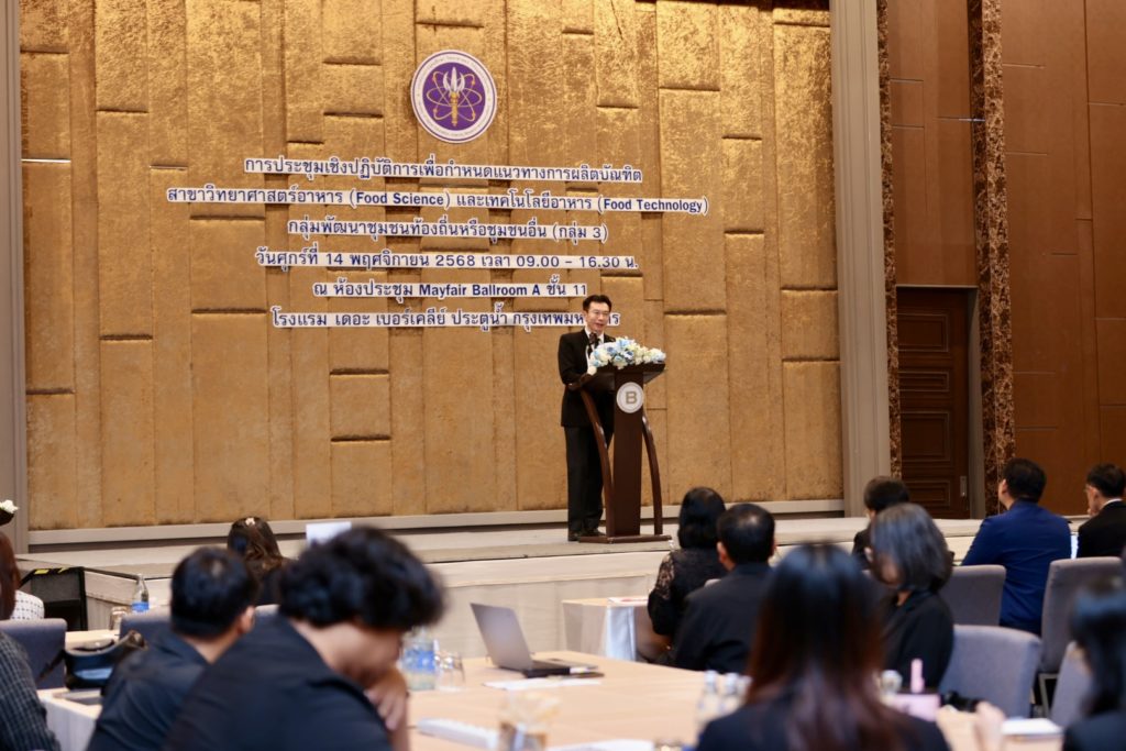 (14 พฤศจิกายน 2568) ดร.สิริพร พิทยโสภณ รองผู้อำนวยการ สำนักงานสภานโยบายการอุดมศึกษา วิทยาศาสตร์ วิจัยและนวัตกรรมแห่งชาติ (สอวช.) เข้าร่วมเสวนาในการประชุมเชิงปฏิบัติการเพื่อกำหนดแนวทางการผลิตบัณฑิตในสาขาวิทยาศาสตร์อาหาร (Food Science) และเทคโนโลยีอาหาร (Food Technology) ภายใต้สถาบันอุดมศึกษากลุ่มพัฒนาชุมชนท้องถิ่นหรือชุมชนอื่น (กลุ่ม 3) ซึ่งจัดโดย สำนักงานปลัดกระทรวงการอุดมศึกษา วิทยาศาสตร์ วิจัยและนวัตกรรม (สป.อว.) ณ ห้อง MAYFAIR ชั้น 11 โรงแรมเดอะ เบอร์เคลีย์ ประตูน้ำ