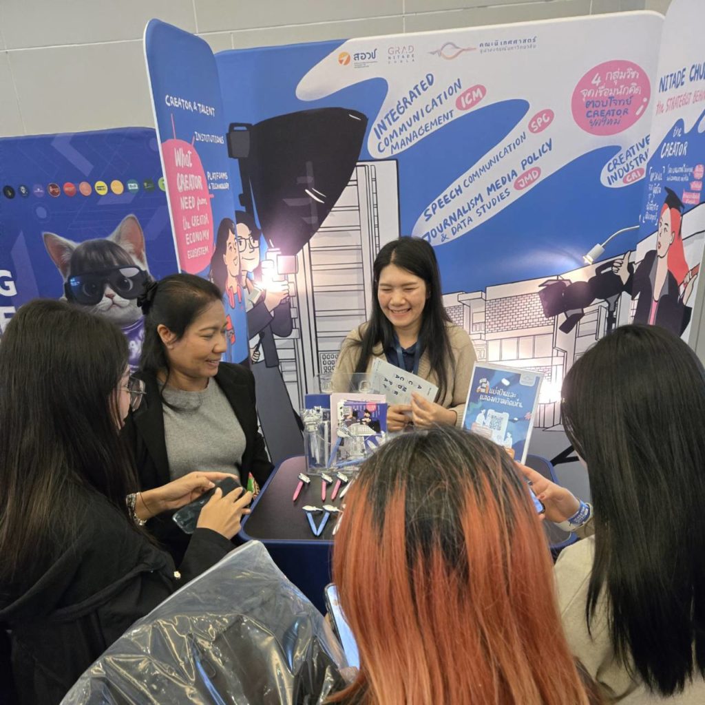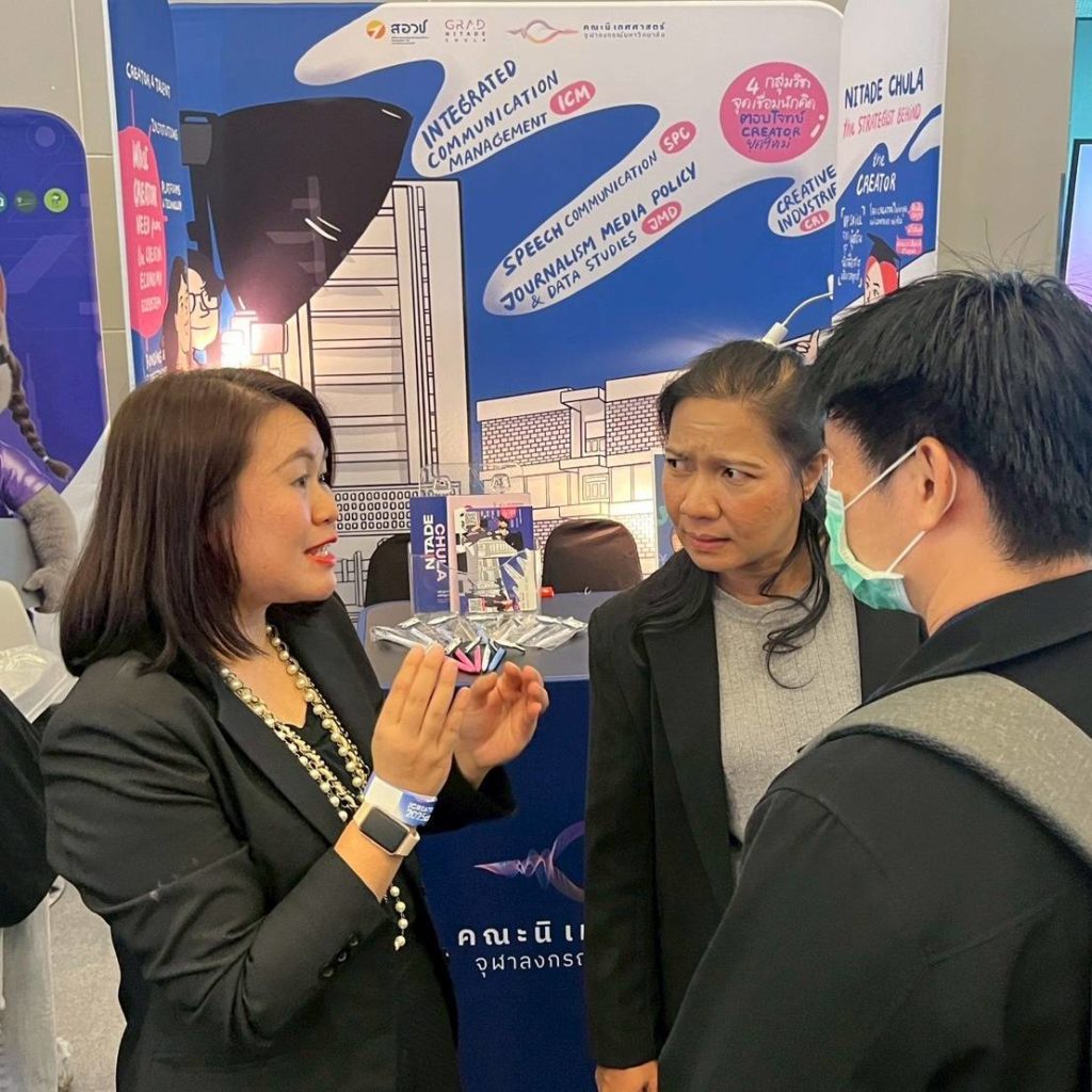 ฝ่ายนโยบายเศรษฐกิจและอุตสาหกรรมสร้างสรรค์ สอวช. ร่วมกับคณะนิเทศศาสตร์ จุฬาฯ จัดบูทกิจกรรมรับฟังความคิดเห็นในการพัฒนานโยบายเพื่อส่งเสริม Creator Economy ของไทยจากคอนเทนต์ครีเอเตอร์ และผู้สนใจที่มาร่วมงานผ่านการสื่อสารรูปแบบต่าง ๆ ซึ่งได้รับความสนใจจากครีเอเตอร์และผู้เข้าร่วมงานเป็นจำนวนมาก โดยข้อมูลและความเห็นที่ได้รับจะถูกนำไปเป็นส่วนหนึ่งในการพัฒนาข้อเสนอเชิงนโยบายเพื่อพัฒนาและยกระดับระบบนิเวศ Creator Economy ของประเทศไทยในระยะต่อไป