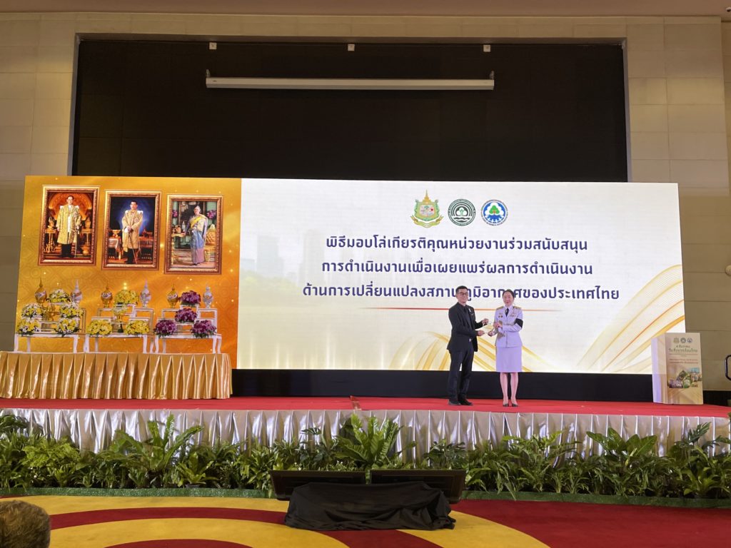 (4 ธันวาคม 2568) กระทรวงการอุดมศึกษา วิทยาศาสตร์ วิจัยและนวัตกรรม (อว.) โดย สำนักงานสภานโยบายการอุดมศึกษา วิทยาศาสตร์ วิจัยและนวัตกรรมแห่งชาติ (สอวช.) โดยมี ดร.นุวงศ์ ชลคุป ผู้ช่วยผู้อำนวยการ สอวช. ผู้แทน ผู้อำนวยการ สอวช. เข้ารับมอบโล่เกียรติคุณหน่วยงานร่วมสนับสนุนการดำเนินงานเพื่อเผยแพร่ผลการดำเนินงานด้านการเปลี่ยนแปลงสภาพภูมิอากาศของประเทศไทย จาก ดร.ชญานันท์ ภักดีจิตต์ ปลัดกระทรวงทรัพยากรธรรมชาติและสิ่งแวดล้อม (ทส.) ซึ่งเป็นหนึ่งในรางวัลสำคัญที่มอบให้แก่หน่วยงานระดับชาติที่มีบทบาทโดดเด่นในการขับเคลื่อนภารกิจด้านสภาพภูมิอากาศของประเทศ ซึ่งเป็นอีกกิจกรรมหนึ่งภายในงานวันสิ่งแวดล้อมไทยและวันอาสาสมัครพิทักษ์ทรัพยากรธรรมชาติและสิ่งแวดล้อมหมู่บ้านแห่งชาติ ประจำปี 2568 ภายใต้แนวคิด “When Nature Thrives, We All Survive : ธรรมชาติคืนชีวิต สู้วิกฤตภูมิอากาศ” ณ ห้องประชุมวายุภักษ์ โรงแรมเซ็นทรา ไลฟ์ ศูนย์ราชการและคอนเวนชันเซ็นเตอร์ แจ้งวัฒนะ กรุงเทพฯ