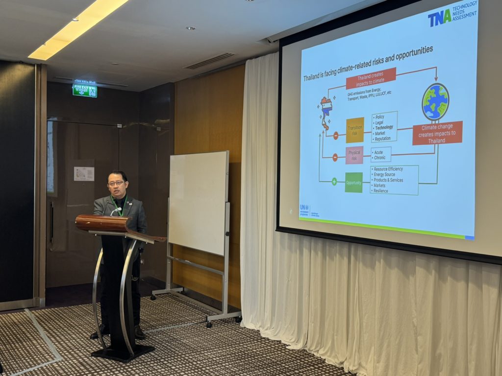 ในการประชุมดังกล่าว ประเทศไทยโดย รศ.วงกต วงศ์อภัย รองผู้อำนวยการ สอวช. ได้นำเสนอภาพรวมสถานะและผลการดำเนินงานของประเทศไทยในโครงการ TNA โดยรายงานความก้าวหน้าจากผลการดำเนินงานที่ได้ดำเนินการในระยะเริ่มต้นของโครงการ รวมถึงการจัดตั้ง  “คณะกรรมการกำกับการดำเนินโครงการประเมินความต้องการเทคโนโลยีเพื่อรองรับการเปลี่ยนแปลงสภาพภูมิอากาศของประเทศไทย” ที่มีองค์ประกอบจากหน่วยงานภาครัฐ ภาคเอกชน และสถาบันการศึกษาและวิจัยที่เกี่ยวข้อง เพื่อให้การประเมินความต้องการเทคโนโลยีของประเทศเชื่อมโยงกับเป้าหมายและผู้มีส่วนได้ส่วนเสียที่สำคัญ เช่น แผนปฏิบัติการด้านการลดก๊าซเรือนกระจกของประเทศ (NDC Action Plan on Mitigation 2021-2030) แผนการปรับตัวต่อการเปลี่ยนแปลงสภาพภูมิอากาศแห่งชาติ (NAP) และ ยุทธศาสตร์ระยะยาวในการพัฒนาแบบปล่อยก๊าซเรือนกระจกต่ำ (LT-LEDS) ของประเทศไทย ซึ่งเป็นแผนสำคัญในการกำหนดกรอบเป้าหมายการลดก๊าซเรือนกระจกและการปรับตัวของประเทศไทย