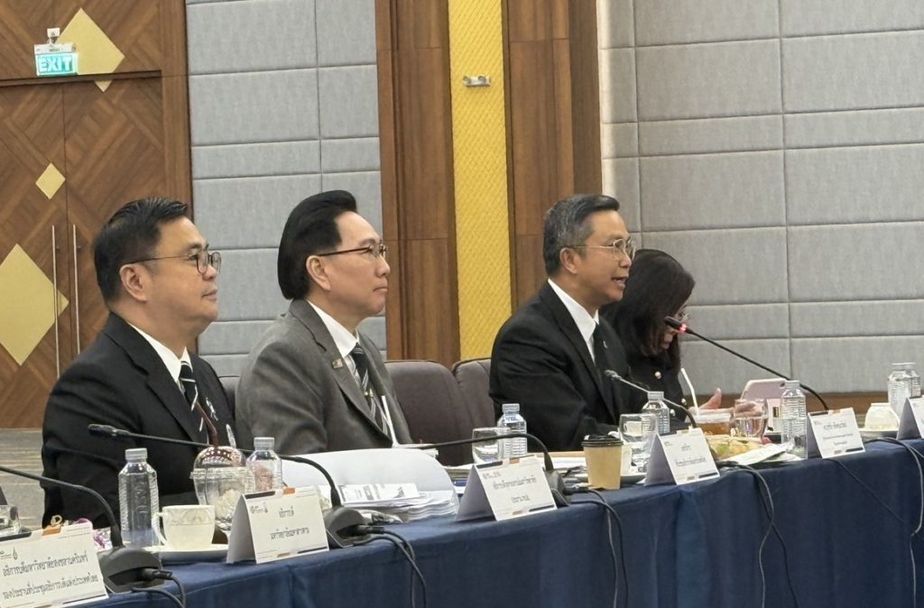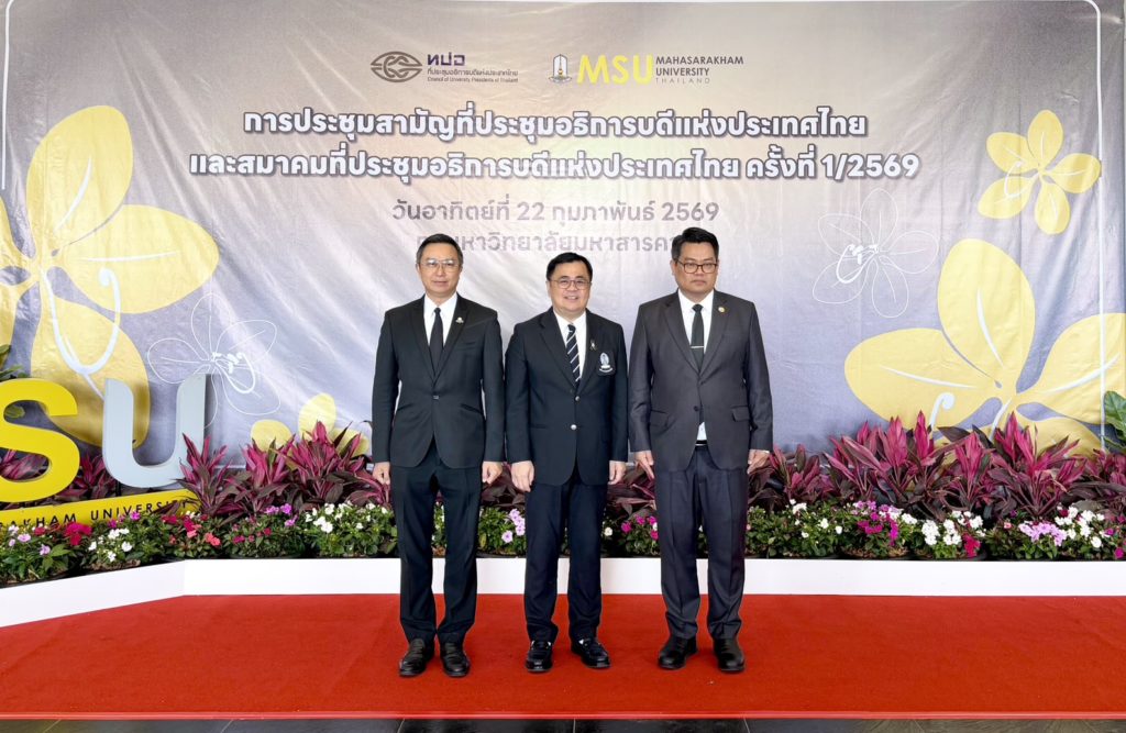 เมื่อวันที่ 22 กุมภาพันธ์ 2569 สำนักงานสภานโยบายการอุดมศึกษา วิทยาศาสตร์ วิจัยและนวัตกรรมแห่งชาติ (สอวช.) โดย ดร.สุรชัย สถิตคุณารัตน์ ผู้อำนวยการ สอวช. เข้าร่วมการประชุมสามัญที่ประชุมอธิการบดีแห่งประเทศไทย (ทปอ.) และสมาคม ทปอ. ครั้งที่ 1/2569 ณ มหาวิทยาลัยมหาสารคาม เพื่อนำเสนอ (ร่าง) กรอบดัชนีนวัตกรรมสังคมที่เหมาะสมสำหรับสถาบันอุดมศึกษาไทย