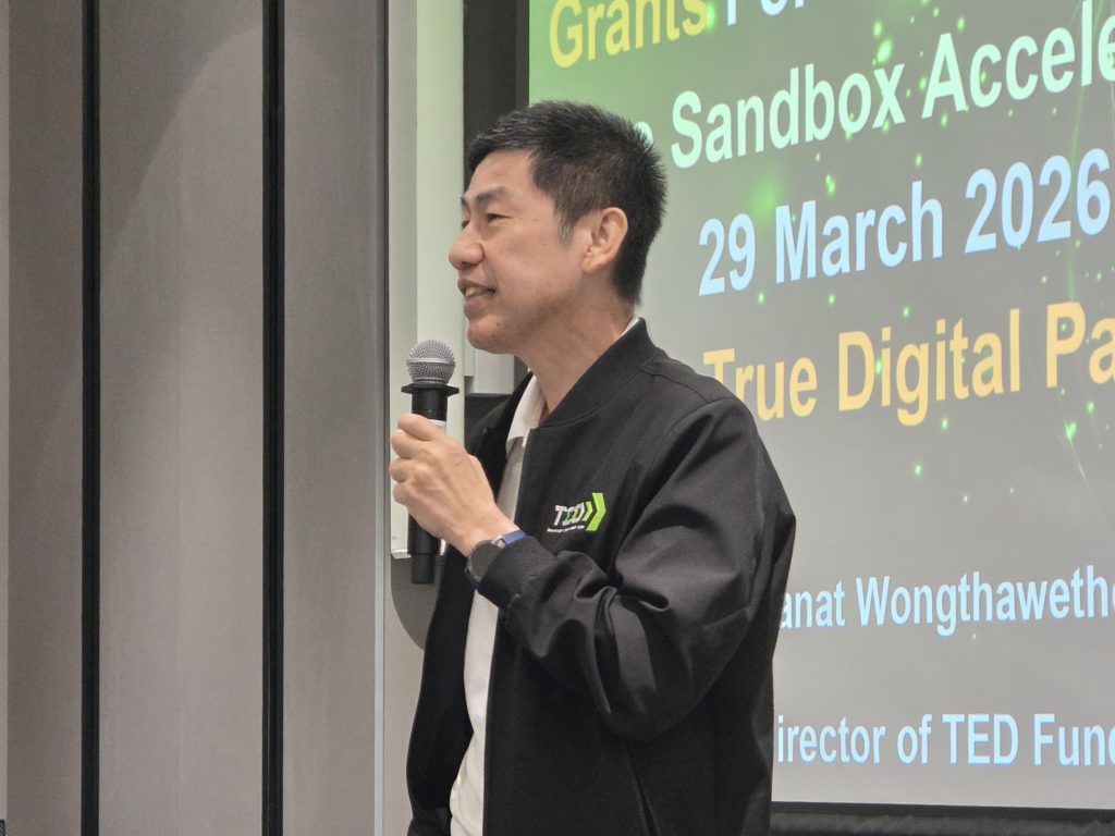 ในช่วงเช้ามีการบรรยายเรื่องกลไกการสนับสนุนทุนจากภาครัฐ โดย น.สพ.ดร.สนัด วงศ์ทวีทอง ผู้จัดการกองทุนพัฒนาผู้ประกอบการเทคโนโลยีและนวัตกรรม (TED Fund) ซึ่งได้แนะนำรายละเอียดโปรแกรมสนับสนุนทางการเงินต่าง ๆ ของกองทุนฯ โดยเฉพาะโครงการ TED Youth Startup ที่สนับสนุนเงินทุนตั้งแต่ 150,000 ถึง 1,500,000 บาท เพื่อให้ผู้เข้าร่วมกิจกรรมใช้เป็นแนวทางในการขอรับทุนสนับสนุนเพื่อพัฒนาแนวคิดและธุรกิจนวัตกรรมสู่เชิงพาณิชย์ต่อไป