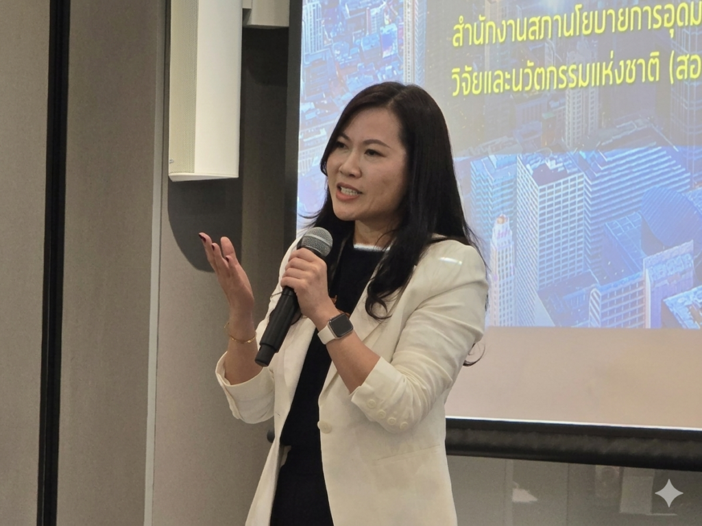 ดร.กรัณฑรัตน์ นาขวา ผู้ช่วยผู้อำนวยการ สอวช. กล่าวต้อนรับและเปิดกิจกรรม โดยเน้นย้ำความสำคัญของกลไก Reverse Pitching ในการพัฒนานวัตกรรมที่ตรงตามความต้องการของตลาด ซึ่ง สอวช. ได้ริเริ่มทดสอบโมเดลนี้เพื่อให้สตาร์ทอัพเรียนรู้และรับโจทย์จากภาคอุตสาหกรรมโดยตรง เพื่อสร้างธุรกิจนวัตกรรมที่ยั่งยืนในอนาคต ทั้งนี้ ได้กล่าวขอบคุณและให้กำลังใจคณะทำงาน พันธมิตรภาคเอกชน และผู้เข้าร่วมโครงการ สำหรับการดำเนินกิจกรรมร่วมกันตลอดระยะเวลาของโครงการ