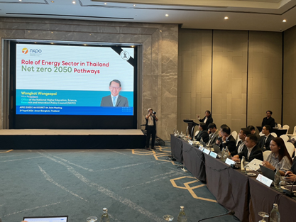 ในการประชุมครั้งนี้มีวัตถุประสงค์เพื่อผลักดันโมเดลเศรษฐกิจ BCG (Bio-Circular-Green Economy) ในภูมิภาคเอเปก โดยมุ่งเน้นการเพิ่มประสิทธิภาพพลังงานและการใช้พลังงานหมุนเวียน ซึ่งมีประเด็นสำคัญคือการเตรียมรับมือความต้องการพลังงาน การวางมาตรฐานด้านพลังงาน และการวิเคราะห์ภาพรวมแนวโน้ม Bioenergy จากรายงานผลการศึกษา APEC Bioenergy Outlook ที่ระบุสัดส่วนความต้องการพลังงานชีวภาพที่มีถึงร้อยละ 61 ของอุปทานพลังงานหมุนเวียนโลก จากภาคการผลิตไฟฟ้าและการขนส่ง โดย รศ.วงกต ได้ร่วมนำเสนอในหัวข้อ “Role of Energy Sector in Thailand Net Zero 2050 Pathways” ได้กล่าวถึงเส้นทางสู่เป้าหมาย Net Zero GHG Emissions ซึ่งกำหนดให้ในปี พ.ศ. 2593 ประเทศไทยต้องลดการปล่อย GHG ให้เหลือเพียง 120 MtCO₂eq พร้อมกันนั้นต้องเพิ่มการดูดซับคาร์บอนผ่านกลไก Land Use, Land-Use Change and Forestry (LULUCF) และเทคโนโลยีดักจับและกักเก็บคาร์บอน (CCUS/BECCS) ให้ได้อีก 120 MtCO₂eq เพื่อให้บรรลุความเป็นกลางทางคาร์บอน นอกจากนี้ยังได้นำเสนอแผนงานตามกรอบ NDC 3.0 (ปี พ.ศ. 2574–2578) ซึ่งคณะรัฐมนตรีได้อนุมัติเมื่อวันที่ 4 พฤศจิกายน พ.ศ. 2568 โดยตั้งเป้าลดการปล่อย GHG แบบ Absolute Emission Reduction เทียบกับปีฐาน 2562 รวม 109.2 MtCO₂eq แบ่งเป็นมาตรการภาคบังคับ (Unconditional) 64.7 MtCO₂eq และมาตรการที่ต้องอาศัยการสนับสนุนระหว่างประเทศ (Conditional) 44.5 MtCO₂eq