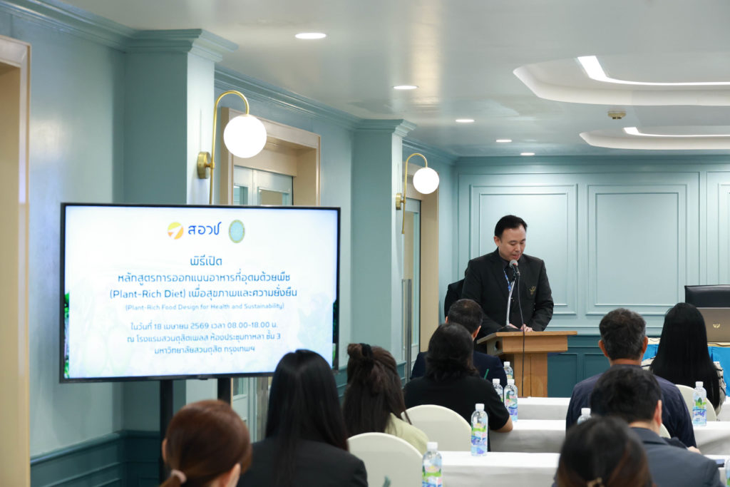 สำนักงานสภานโยบายการอุดมศึกษา วิทยาศาสตร์ วิจัยและนวัตกรรมแห่งชาติ (สอวช.) ภายใต้ กระทรวงการอุดมศึกษา วิทยาศาสตร์ วิจัยและนวัตกรรม (อว.) เข้าร่วมพิธีเปิดหลักสูตร “การออกแบบอาหารที่อุดมด้วยพืช (Plant-Rich Diet) เพื่อสุขภาพและความยั่งยืน” (Plant – Rich Food Design for Health and Sustainability) เมื่อวันที่ 18 เมษายน 2569 ณ โรงแรมสวนดุสิตเพลส มหาวิทยาลัยสวนดุสิต โดยมีคณาจารย์ ผู้ทรงคุณวุฒิ และผู้เรียนเข้าร่วมด้วย