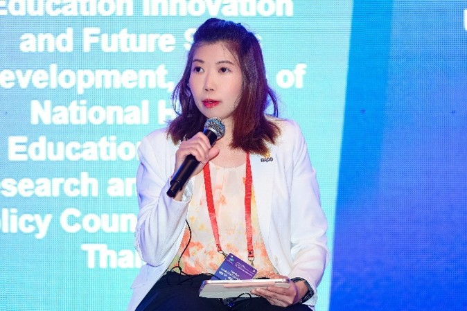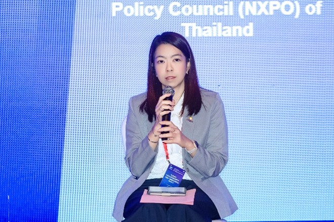 ในการนี้ นางสาวภาณิศา หาญพัฒนนันท์ ผู้อำนวยการฝ่ายอาวุโส ฝ่ายนวัตกรรมอุดมศึกษาและการพัฒนาทักษะแห่งอนาคต ได้นำเสนอแนวทางการพัฒนากำลังคนของประเทศไทยเพื่อรองรับการเปลี่ยนผ่านของเศรษฐกิจดิจิทัลและเศรษฐกิจสีเขียว โดยเน้นการออกแบบระบบการเรียนรู้ที่ยืดหยุ่นและเข้าถึงได้ เช่น การเรียนรู้ผ่านชุมชน การใช้เทคโนโลยีดิจิทัลเป็นฐาน และการพัฒนาหลักสูตรแบบโมดูลาร์ เพื่อสนับสนุนการเรียนรู้ตลอดชีวิต พร้อมทั้งผลักดันความร่วมมือระหว่างภาครัฐ เอกชน และสถาบันการศึกษาในการร่วมพัฒนาทักษะที่สอดคล้องกับความต้องการของอุตสาหกรรม