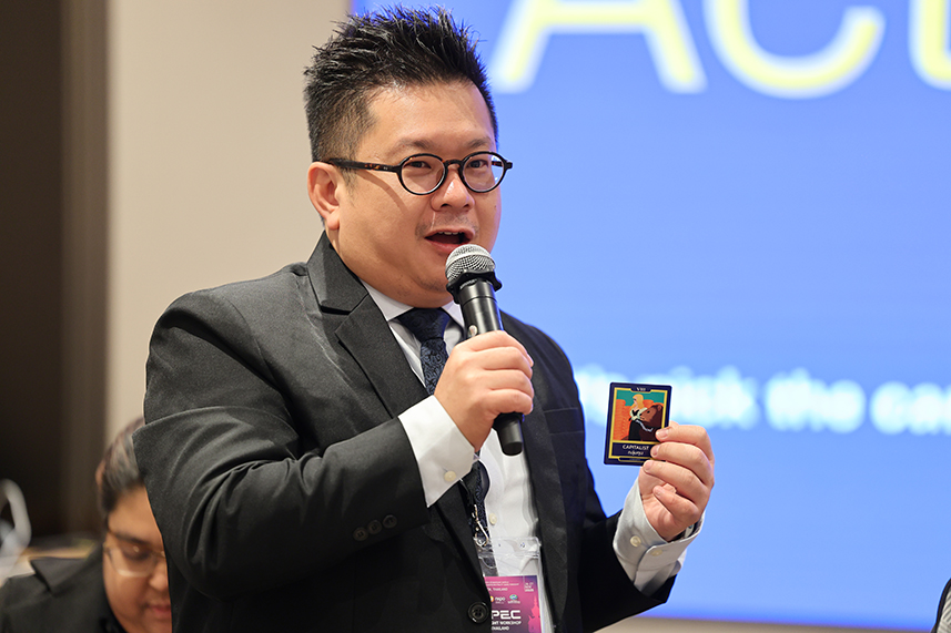 The program featured multiple foresight exercises. On the first day, under the theme “Classifying anticipatory signals,” began with the activity “Imagining Possible Futures with Cards” led by Mr. Pawat Phongsai from the National Intelligence Agency. Participants then moved into “Signal Prioritization,” using collaborative tools and structured dialogue to narrow a large pool of signals into a focused set of high-impact signals relevant to APEC’s carbon-neutral trajectory.
