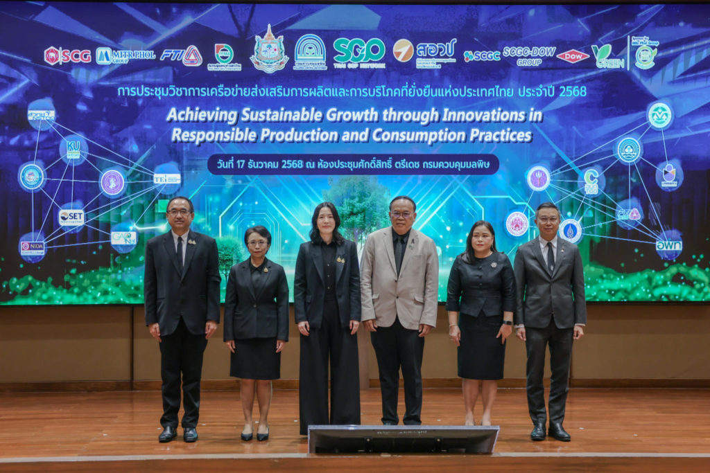 Dr. Surachai Sathitkunarat, President of NXPO, delivered a special lecture on policies supporting the circular economy and sustainable consumption and production, aligned with SDG 12, at the 2025 Annual Academic Conference of the Thai Sustainable Consumption and Production Network (Thai SCP Network). The conference was held under the theme “Achieving Sustainable Growth through Innovations in Responsible Production and Consumption Practices” and was officiated by Ms. Patranant Thongprapan, Deputy Secretary-General to the Prime Minister for Political Affairs.