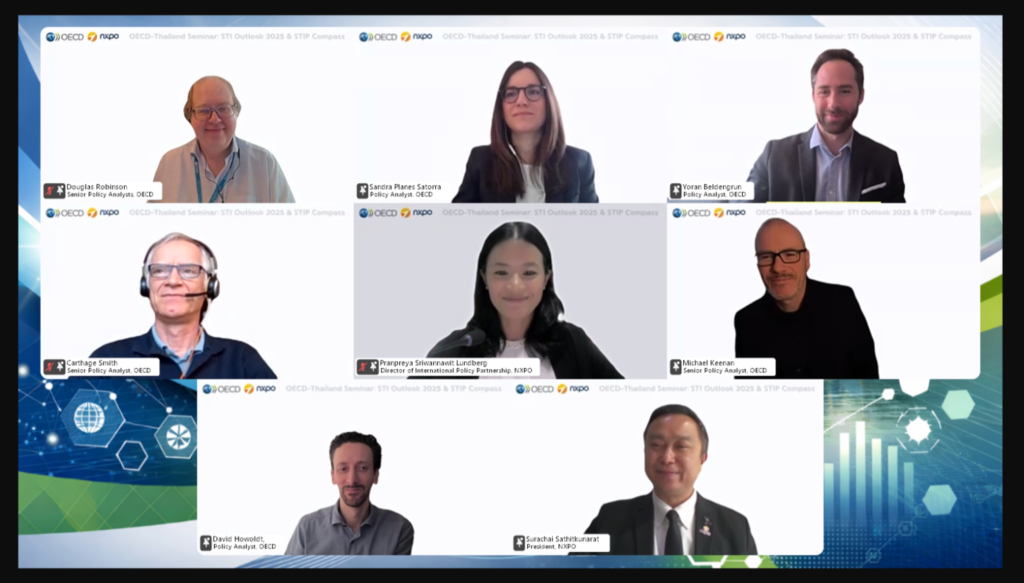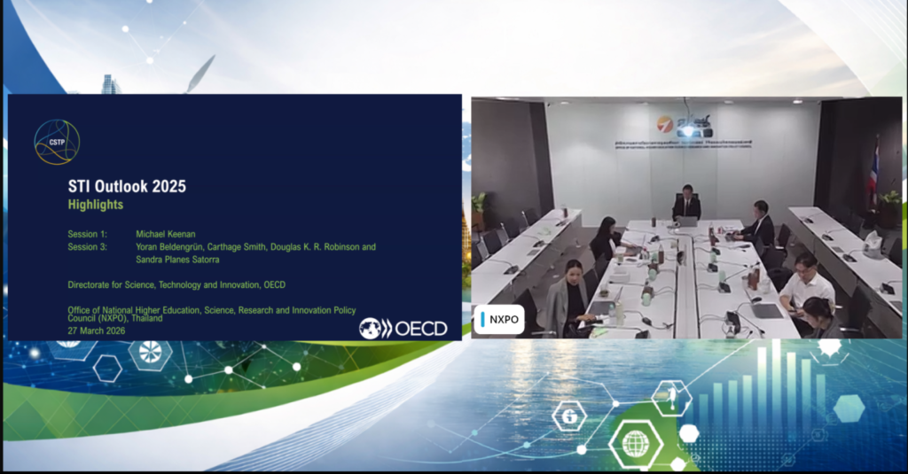 On 27 March 2026, NXPO, in collaboration with the Organisation for Economic Co-operation and Development (OECD), held the “OECD-Thailand Seminar: STI Outlook 2025 & STIP Compass” via an online platform.
