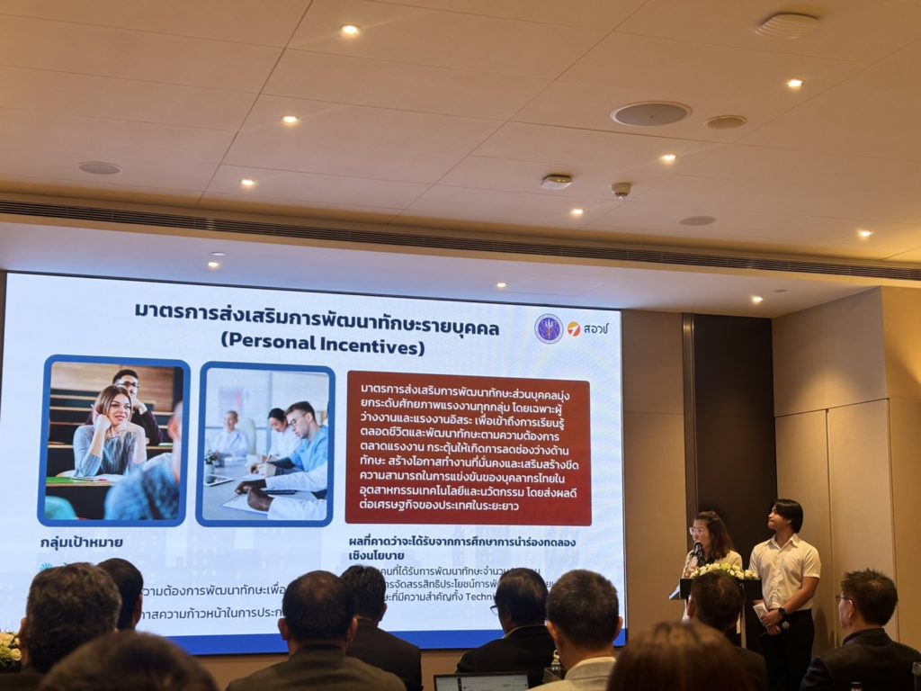 During the session, Ms. Panisa delivered a special lecture on “Government Measures and Incentives to Support Workforce Development for the Semiconductor and Advanced Electronics Industry,” outlining key policy mechanisms: