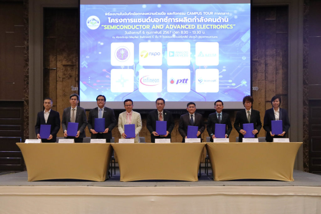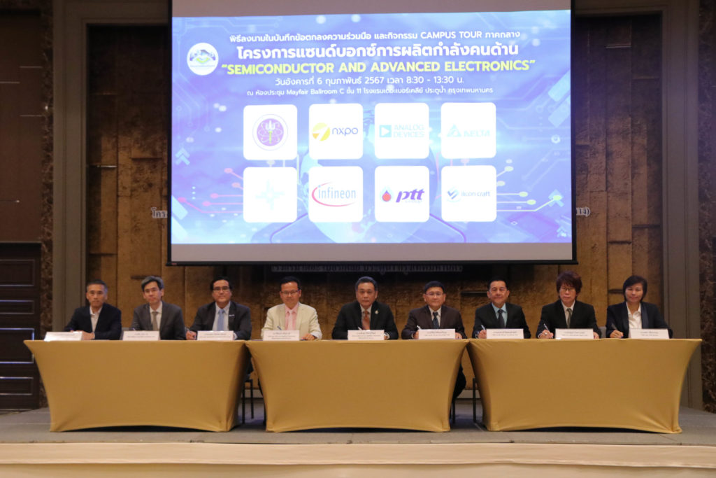 อว. – สอวช. ลงนามความร่วมมือร่วมกับภาคเอกชน ในโครงการแซนด์บ็อกซ์ผลิตกำลังคนด้านเซมิคอนดักเตอร์และอิเล็กทรอนิกส์ขั้นสูง หวังยกระดับความสามารถด้านการแข่งขัน พัฒนากำลังคนสมรรถนะสูง ดึงดูดต่างชาติลงทุนในไทย