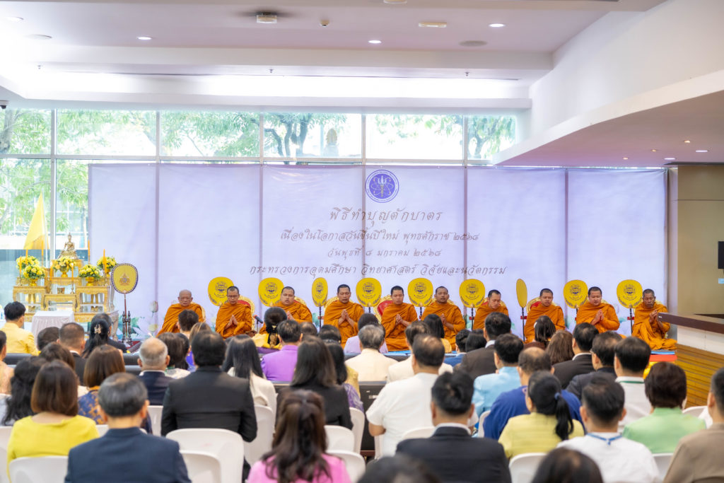 พิธีทำบุญตักบาตรอาหารแห้ง เนื่องในโอกาสวันขึ้นปีใหม่ 2568 กระทรวง อว.